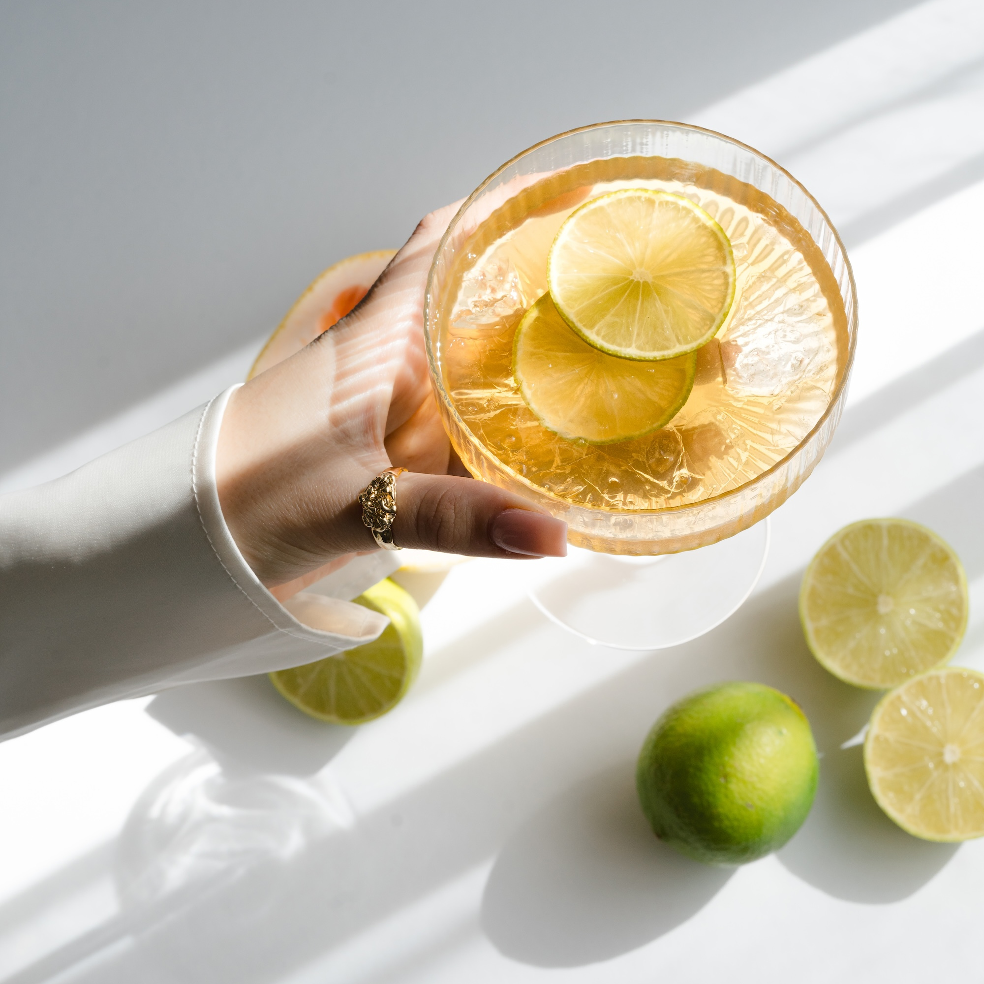 Elegante set glazen met prachtige groeven om tropisch van te genieten. Deze glazen zijn niet alleen een sieraad voor elk huis, maar ook perfect voor het proeven van koude, verfrissende drankjes en kleurrijke cocktails.